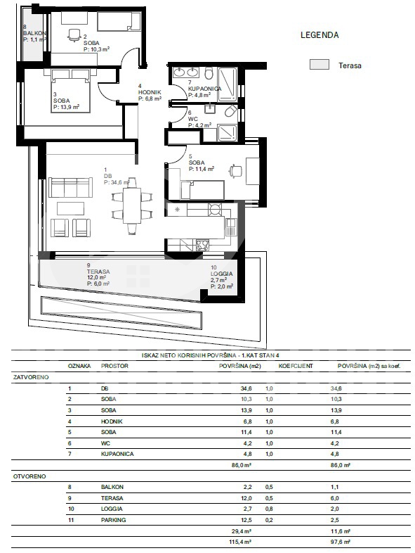 Apartment 3 rooms for sale, Varaždin,
